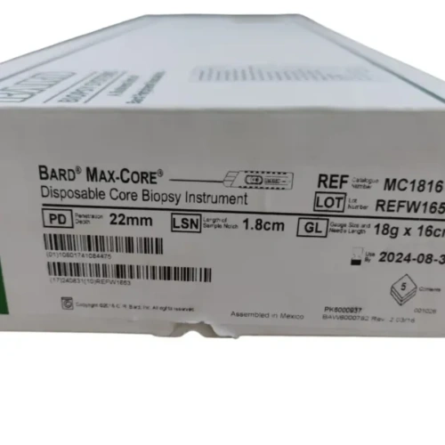 Its color-coded design helps quickly identify the correct needle gauge, reducing chances of error. It is also compatible with the TruGuide Coaxial Biopsy Needle, which improves both efficiency and accuracy. The BARD Max-Core offers reliable performance with convenience and comfort in a hospital or diagnostic lab.
