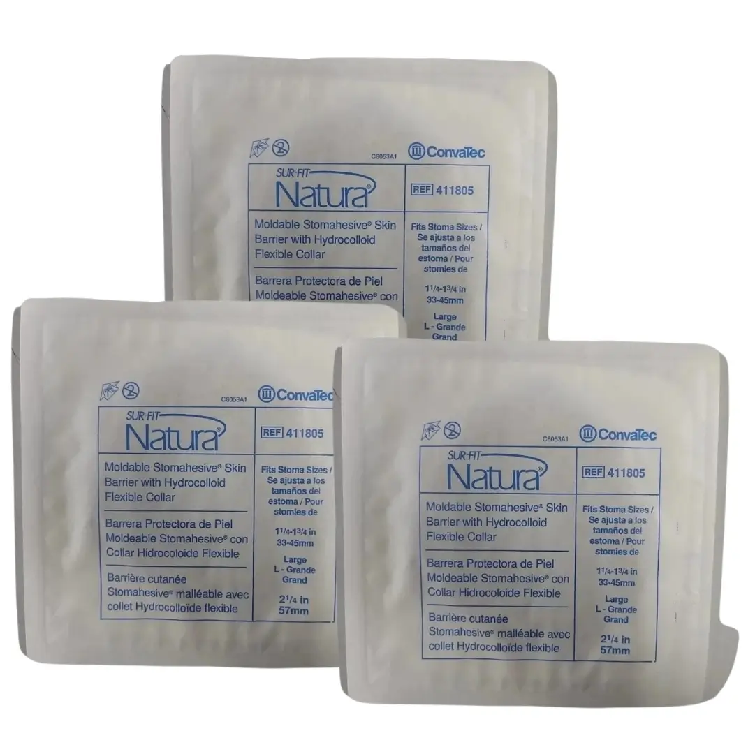 ConvaTec Sur-Fit Natura Moldable Stomahesive Skin Barrier. Stomahesive skin barriers/wafers are ideal for people whose stoma output is semi-formed to formed stool. This reliable skin barrier/wafer provides a special formula that enables the skin barrier/wafer to adhere to both dry and moist skin. It holds firmly to the skin while helping to protect against irritating output. Also features an outer protective coating which helps keep it in place. Maintains adhesion to the skin when bathing.
