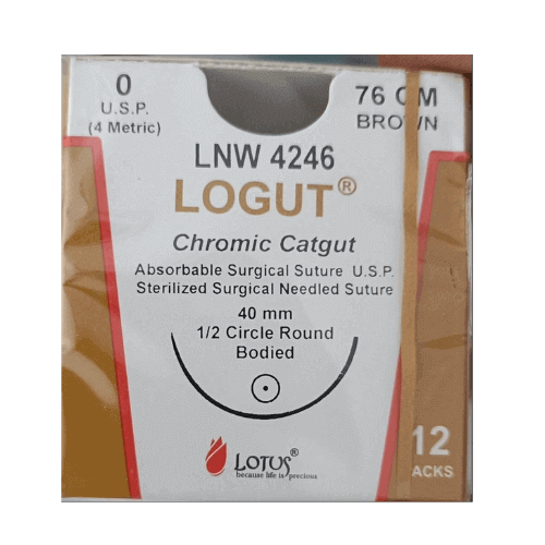 Buy Lotus Logut Suture – Catgut Type – LNW4246 USP 0-76cm-1/2 Circle Round Bodied 40mm Needle – 12 Pcs