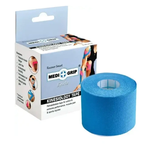 Medigrip Kinesiology Tape, also known as K-Tape, Kinesio Tape, elastic therapeutic tape, KT Tape, or RockTape, is an adhesive bandage widely used in the medical and sports sectors. It is primarily used to relieve pain, reduce swelling, support muscles and joints, improve athletic performance, speed up recovery, and minimize muscle fatigue.