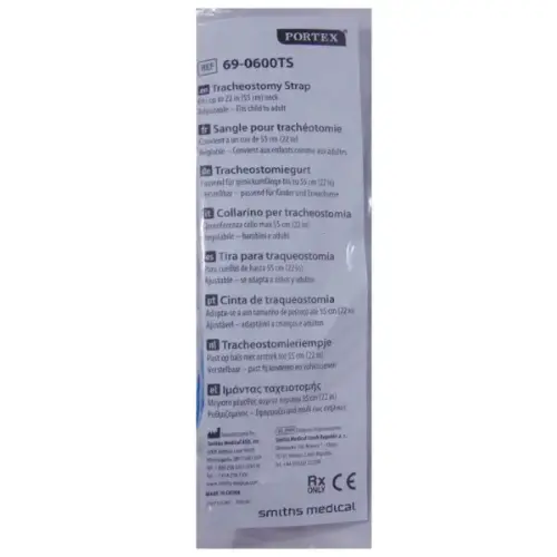 The Portex Tracheostomy Tube Strap is made of soft, adjustable material and is designed to hold the tracheostomy tube securely in place. It is typically used in conjunction with other tracheostomy supplies such as tracheostomy tubes, tracheostomy dressings, and tracheostomy cleaning kits.