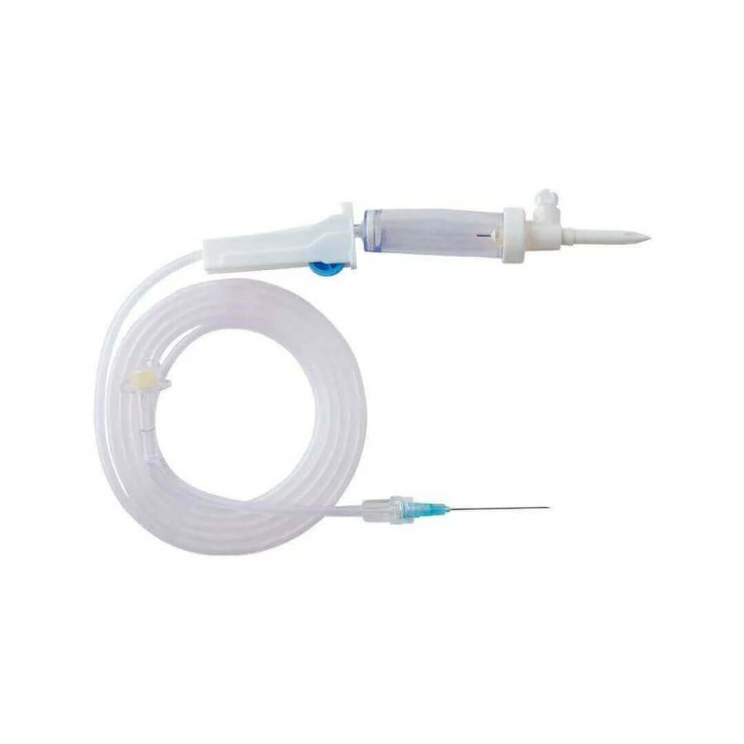 It has a cylindrical collapsible drip chamber, enabling clear visualization of the drop rate for better monitoring and a disc-type fluid filter effectively removes particulate matter, ensuring clean and safe IV fluid administration.