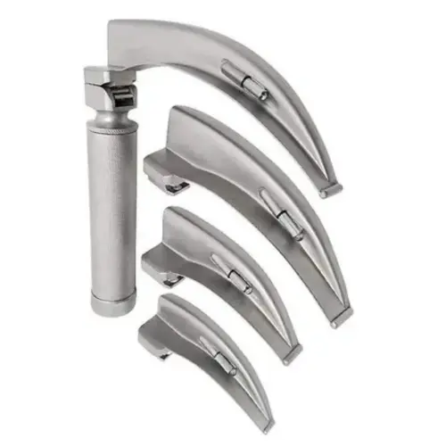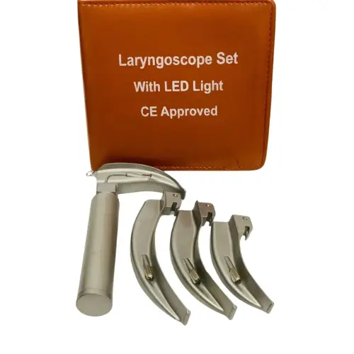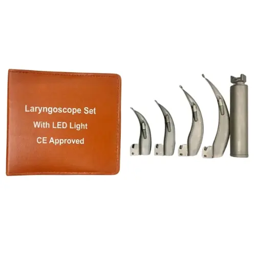 Laryngoscope Set with LED Light is a medical tool used for efficient and safe intubation procedures. Featuring four different blade sizes, it ensures versatility in adult airway management. It comes equipped with an LED light, providing a bright and clear view of the airway, even in low-light conditions, enhancing precision during procedures. It is made for durability and ease of use, offers reliable performance in emergency situations and routine intubations.